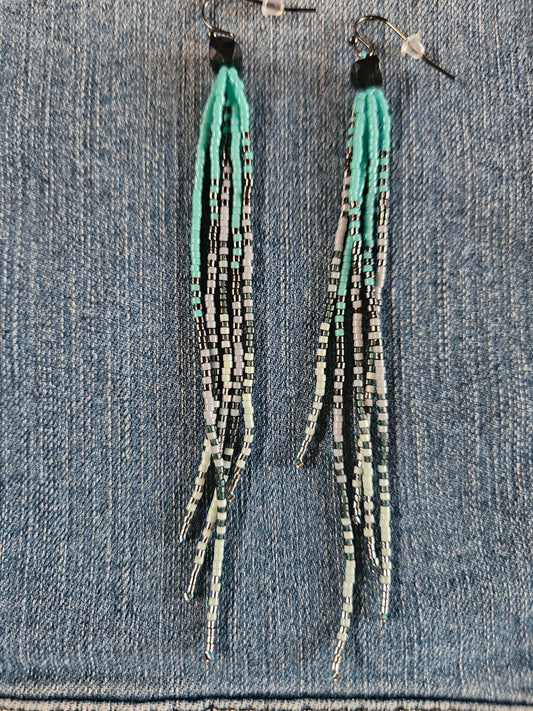 Glacier Mist Collection - Long Fringe Earrings with Gemstone